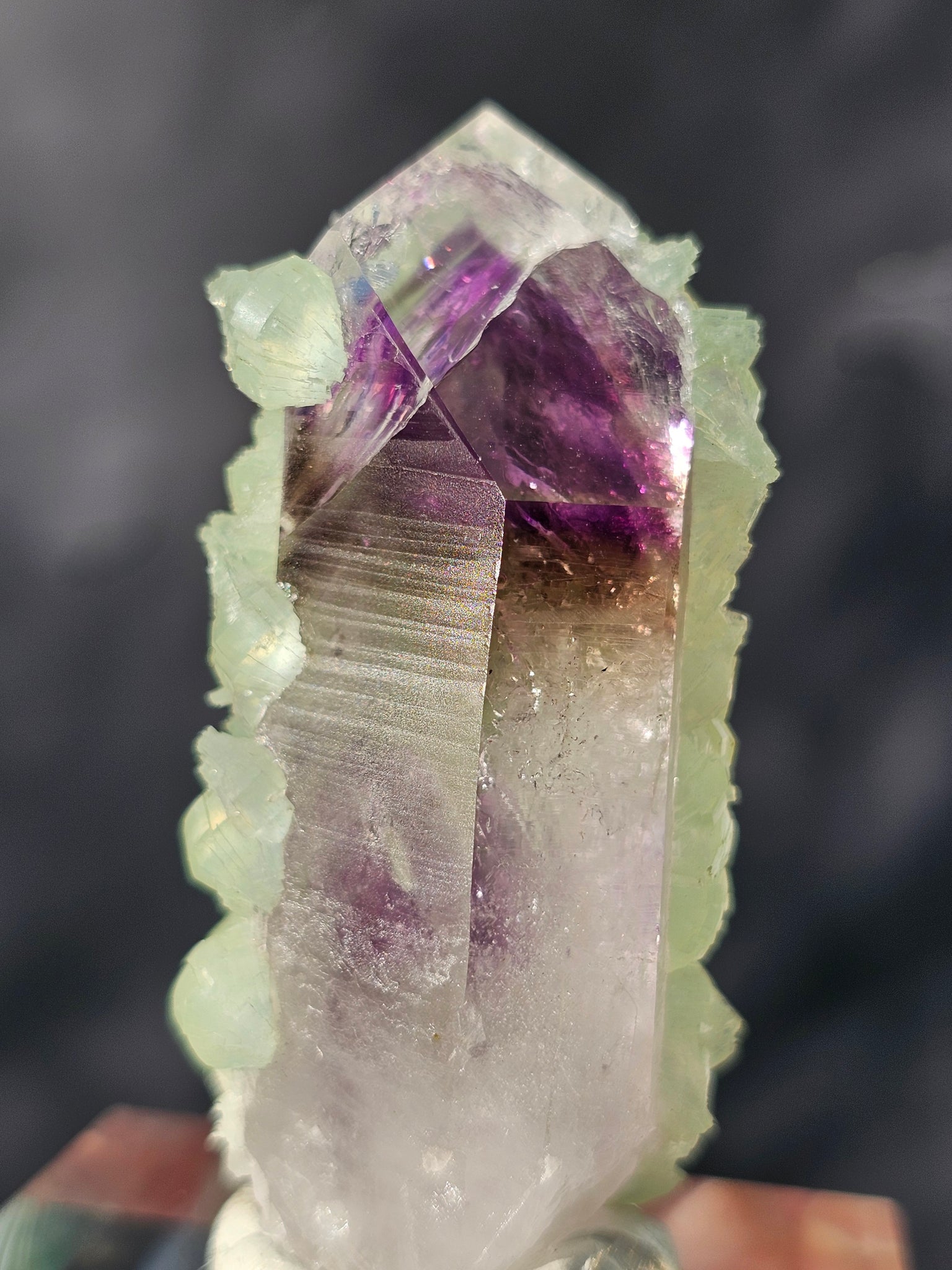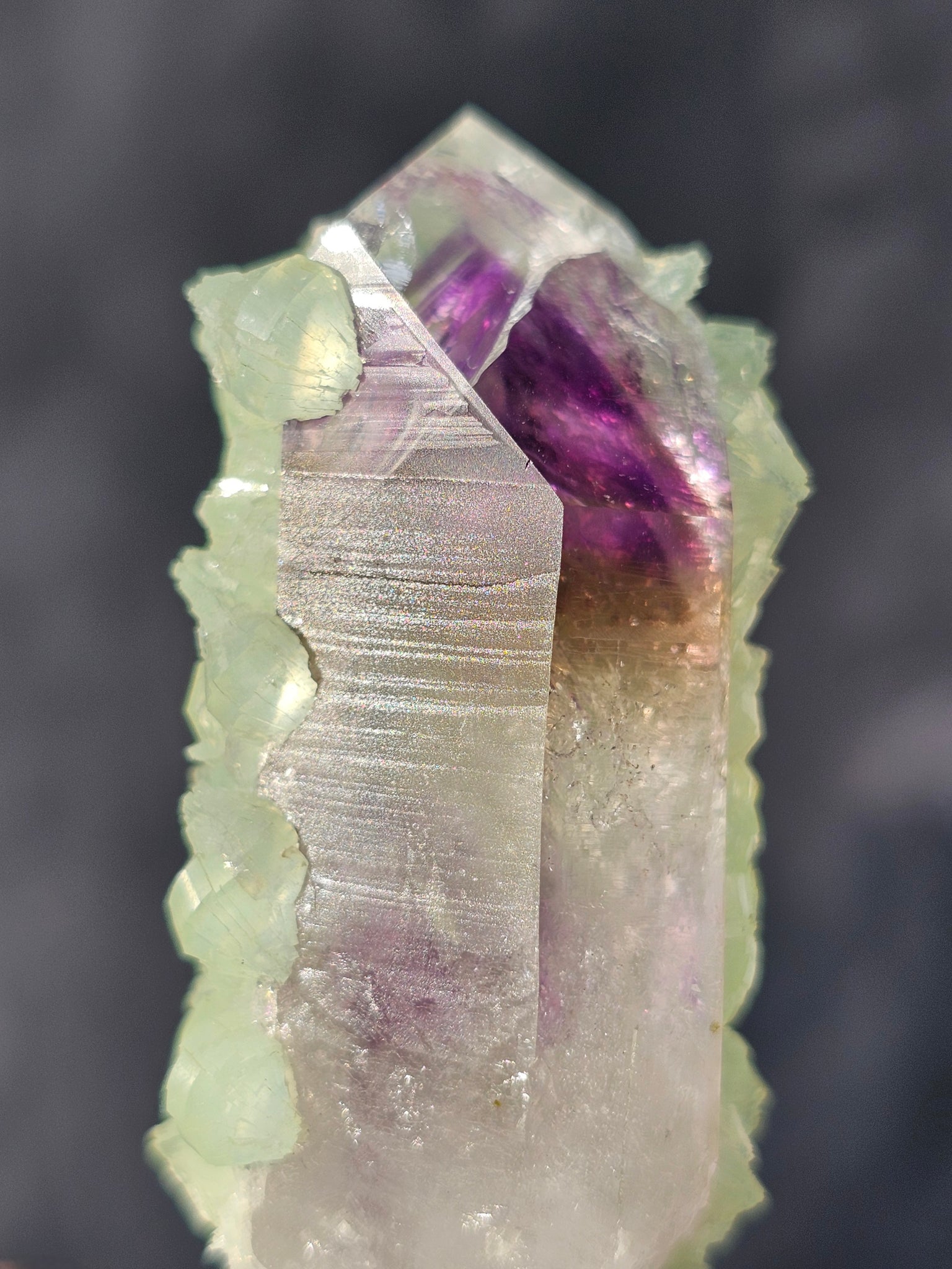 Goboboseb Amethyst with a Prehnite 'jacket' from Namibia: vivid violet quartz juxtaposed with pale green prehnite for striking contrast.