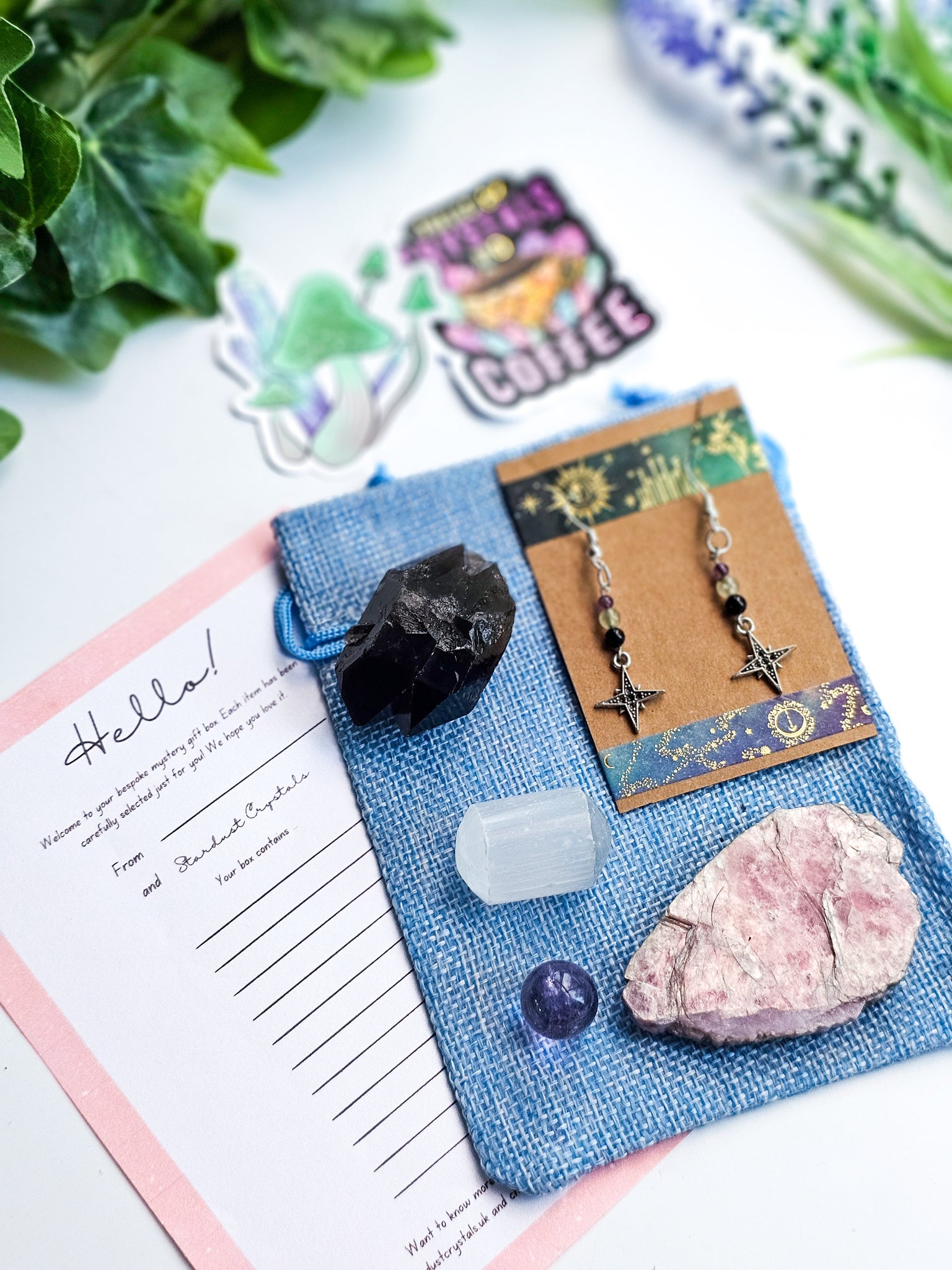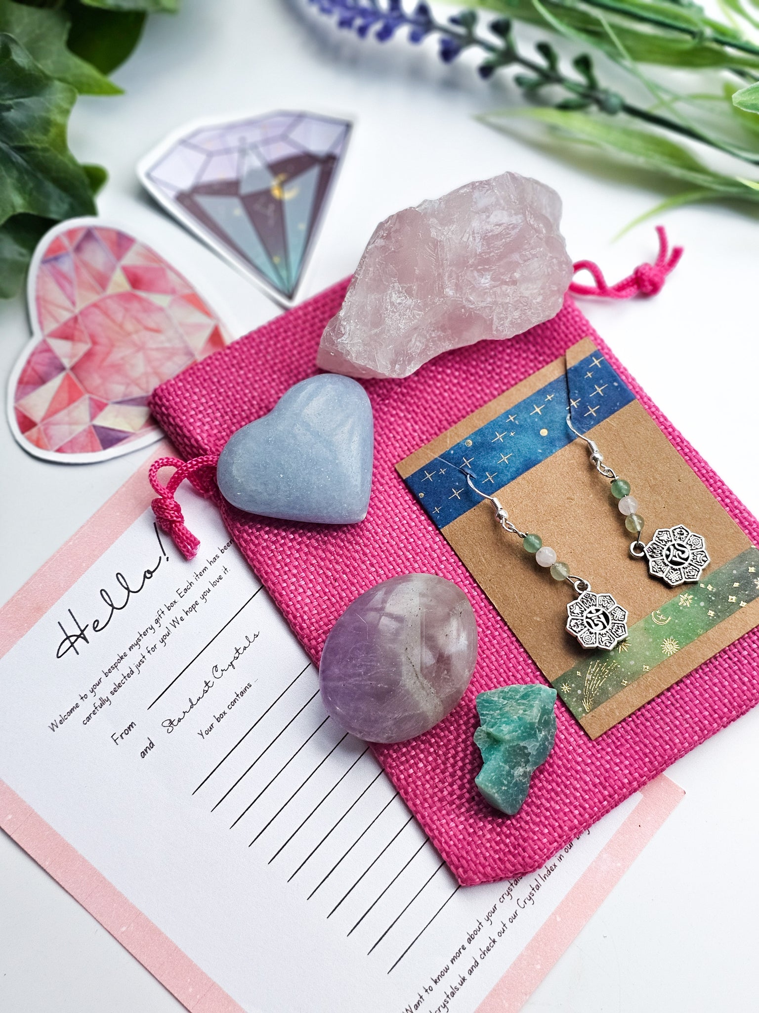Beautiful, well made cotton bags containing crystal goodies worth a minimum of £15 and some bags will also contain vouchers for free stuff / money off future orders!