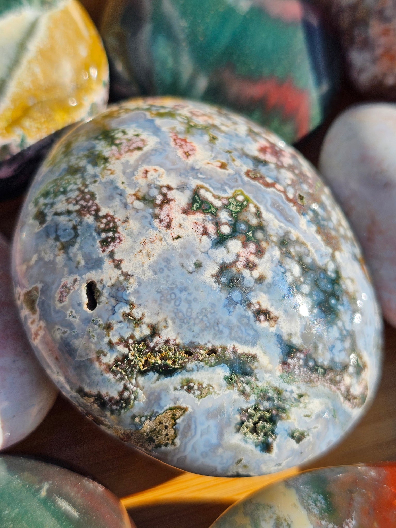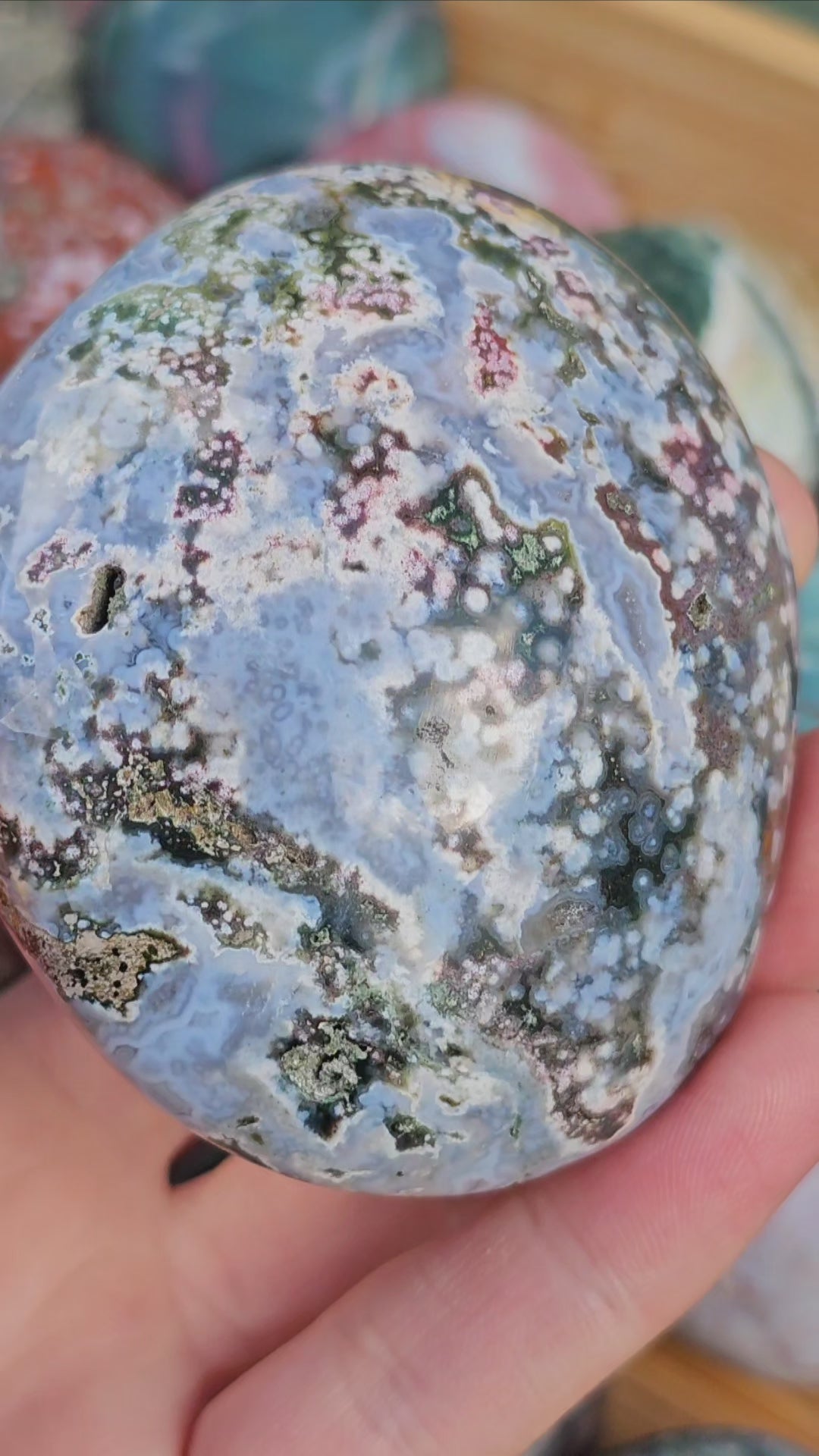 Ocean Jasper is known as the “stone of joy,” bringing uplifting, nurturing energy that helps release stress and negative thought patterns. Each polished palm stone showcases unique swirls, orb-like patterns, and a wide variety of natural colours, making it a soothing companion for meditation, grounding, or simply holding in your hand for comfort.