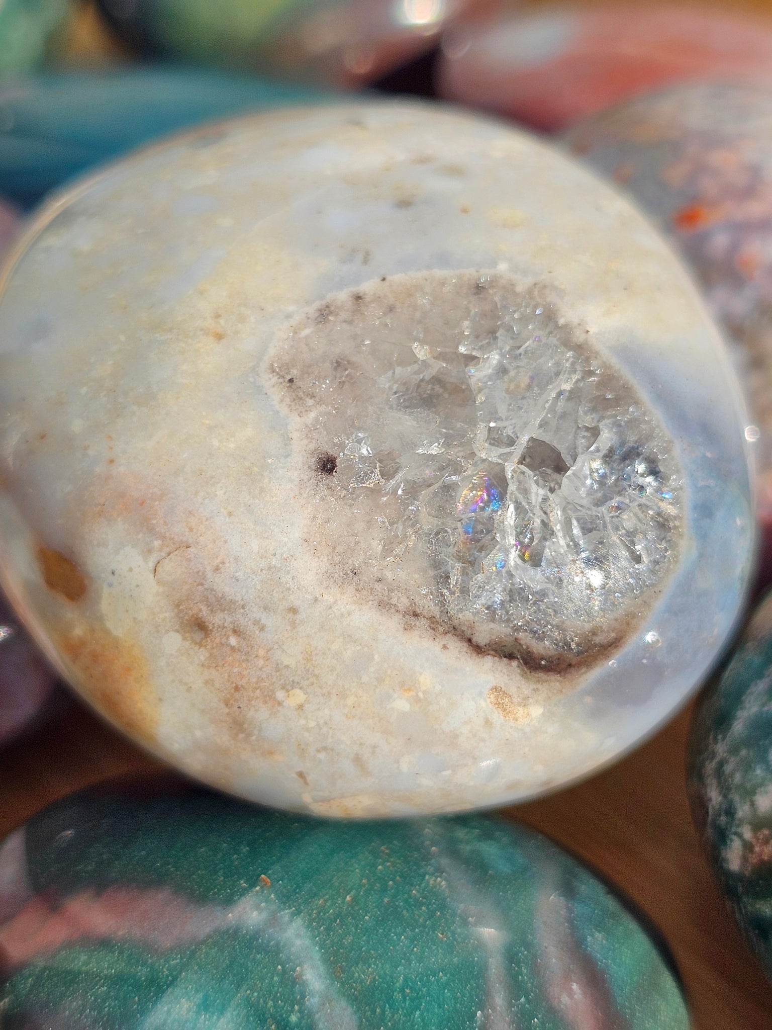 Ocean Jasper is known as the “stone of joy,” bringing uplifting, nurturing energy that helps release stress and negative thought patterns. Each polished palm stone showcases unique swirls, orb-like patterns, and a wide variety of natural colours, making it a soothing companion for meditation, grounding, or simply holding in your hand for comfort.