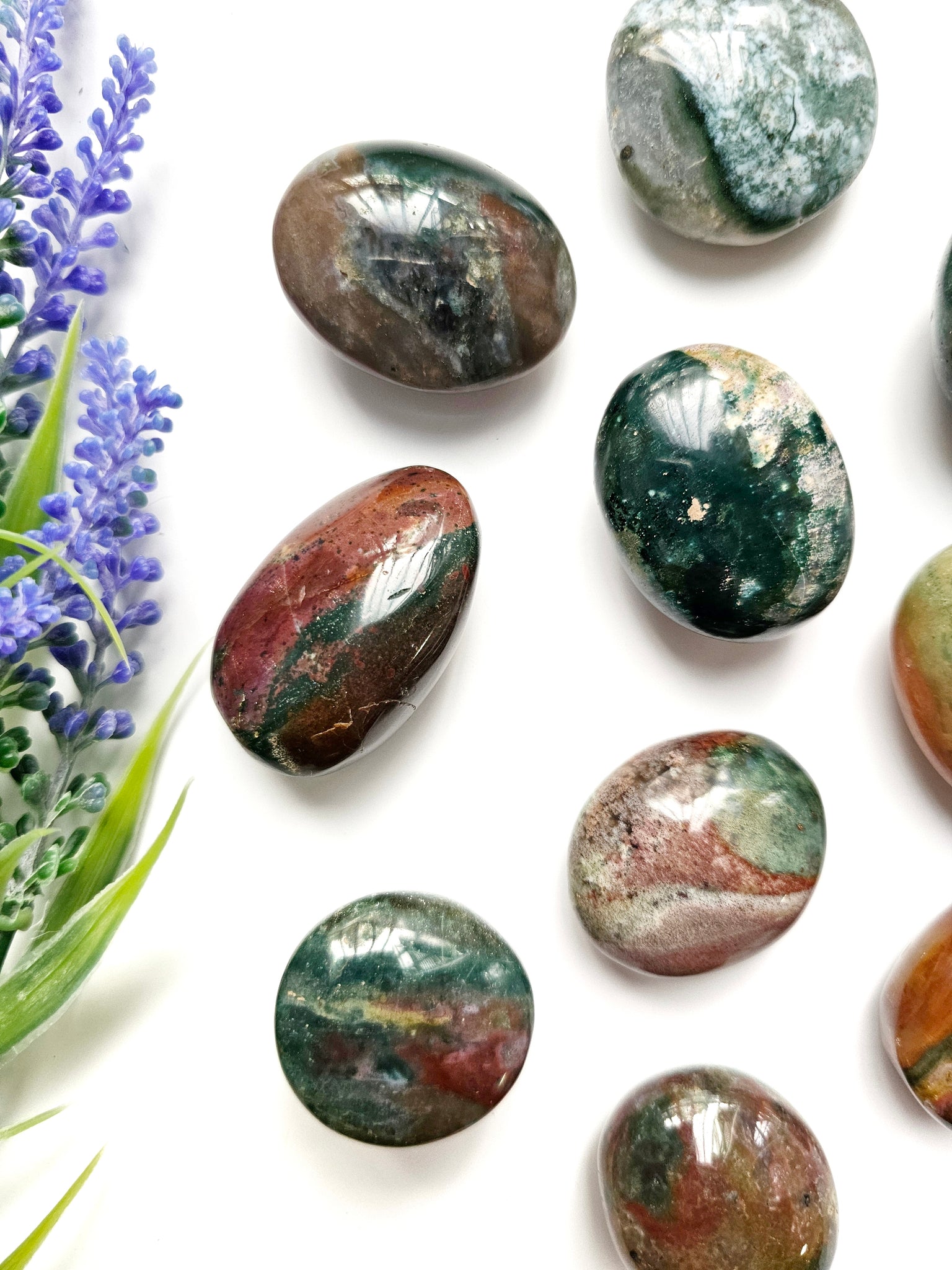 Each palmstone is intuitively selected just for you, ensuring the stone you receive resonates with your unique energy. Perfect for meditation, healing, or as a beautiful natural decoration, these Ocean Jasper palmstones will bring calm and positivity into your life.