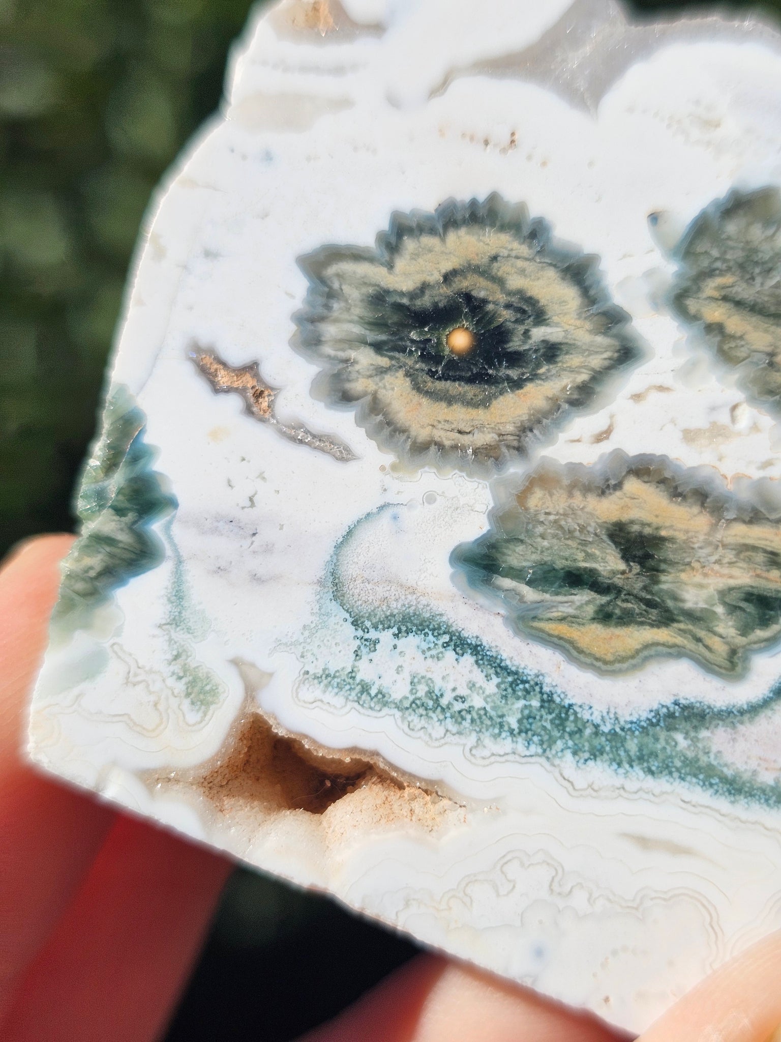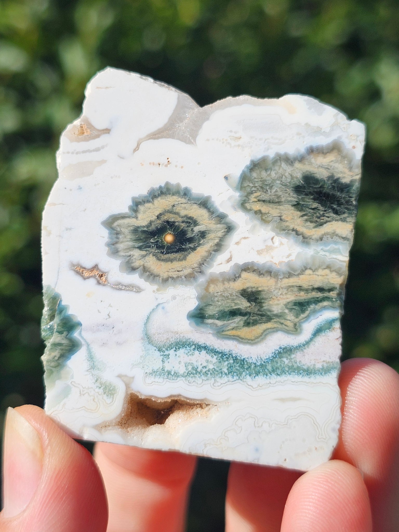 Ocean Jasper is known as the “stone of joy,” bringing uplifting, nurturing energy. Each slab shows playful orbs and flowing patterns in varied natural colours—a soothing, nature-inspired statement for shelves and desks.