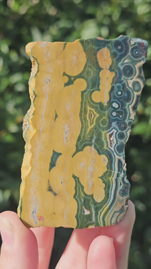 Ocean Jasper is known as the “stone of joy,” bringing uplifting, nurturing energy. Each slab shows playful orbs and flowing patterns in varied natural colours—a soothing, nature-inspired statement for shelves and desks.