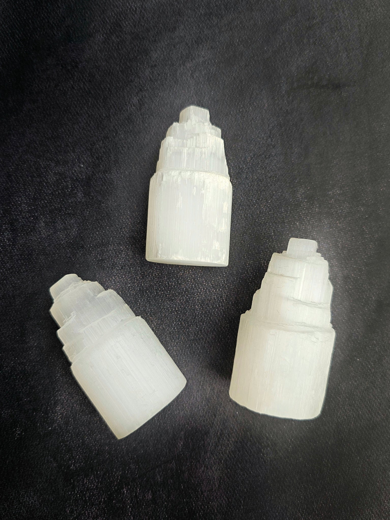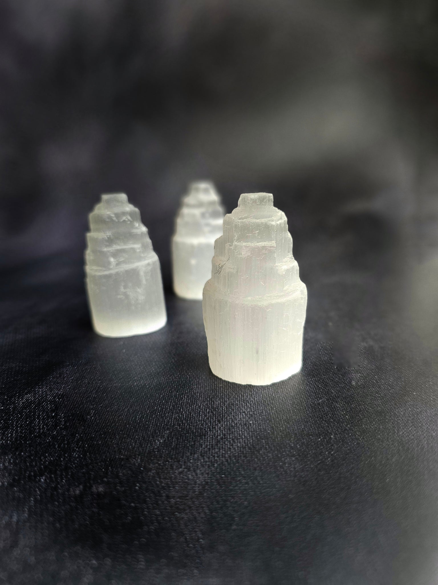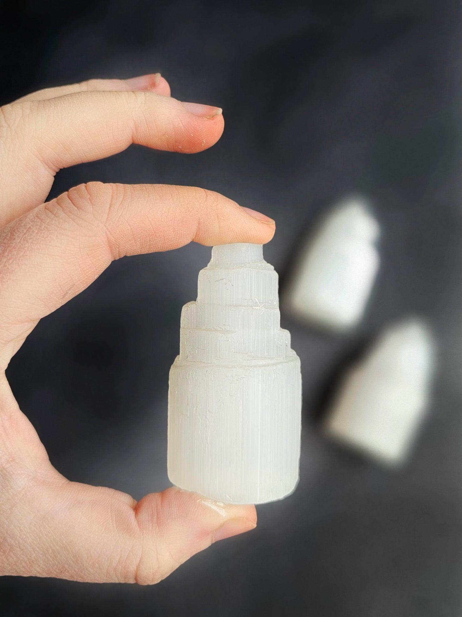 Elevate your space with these enchanting Selenite (Satin Spar) Selenite Small Towers, expertly carved and polished, each tower features a smooth satin finish that radiates a gentle, ethereal glow. With dimensions of approximately 100mm x 40mm x 9mm, these luminous towers are perfect for infusing any room with peace, clarity, and positive energy. Their sleek form and calming presence make them a cherished addition to meditation spaces, altars, or as a thoughtful gift for anyone seeking balance and harmony.