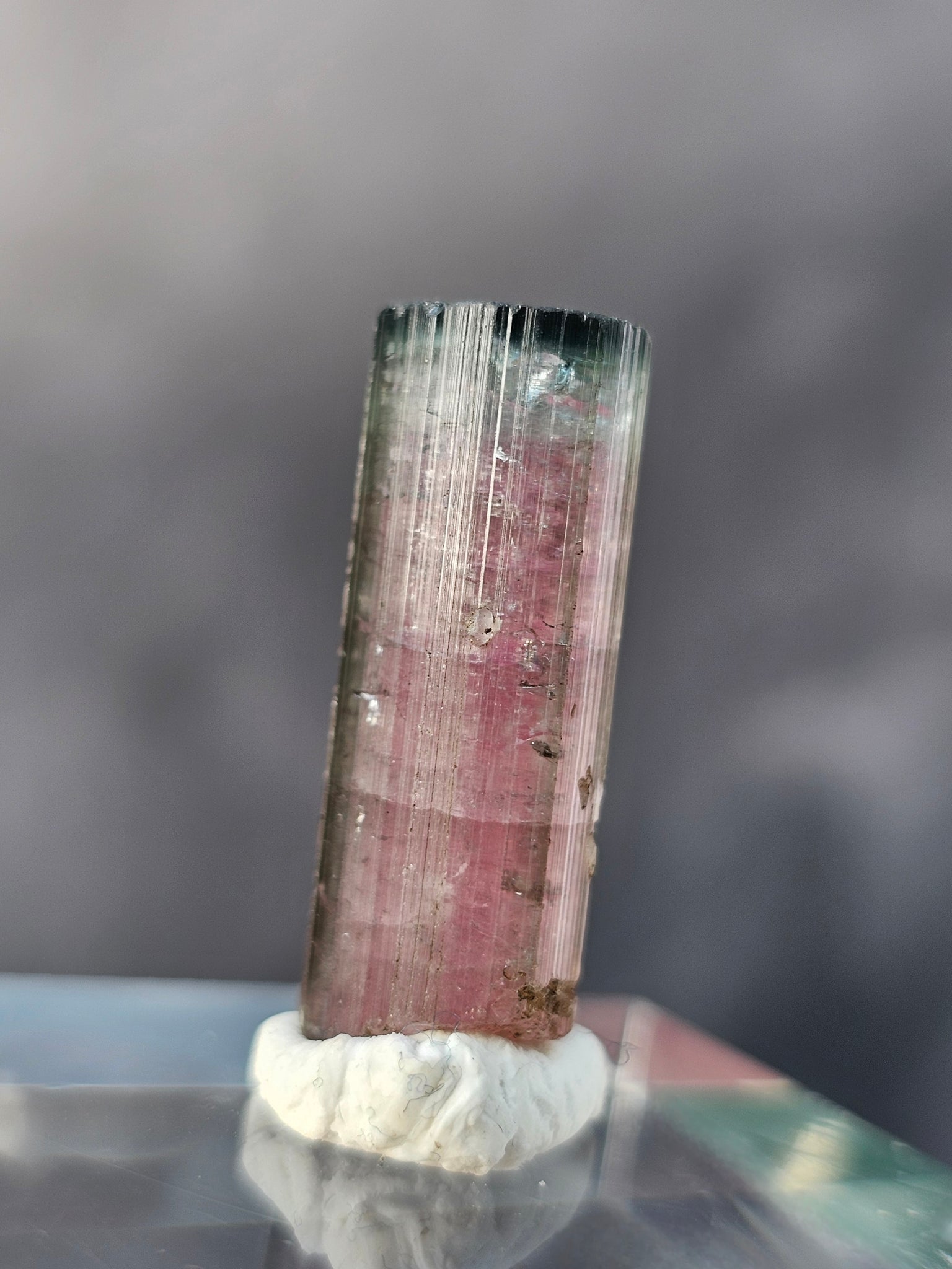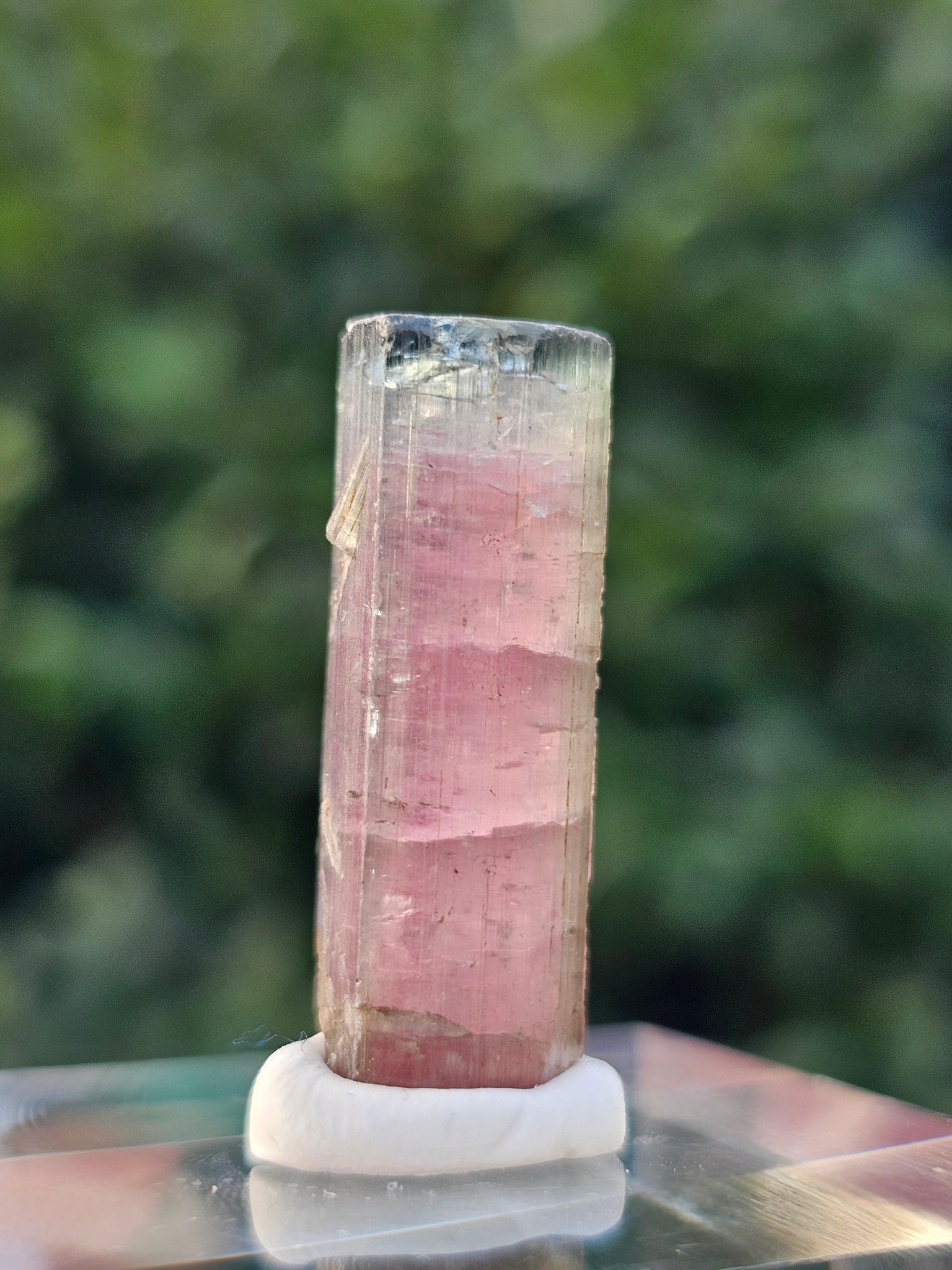 Collector‑grade mineral specimen featuring desirable pink and green colour, clarity and surface quality. Clean faces, undamaged edges and balanced composition enhance cabinet presence.